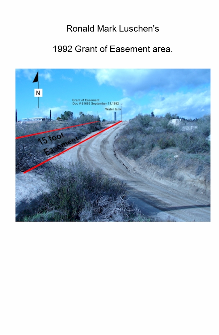 On September 11, 1992 Ronald Mark Leusehen signed a road and water tank "Grant of Easement" # 227694 thereby creating rights to and for a new water storage system. The grant was recorded on May 16, 1993 Pictured here. Mr. Ronald Mark Leushen did not grant rights to the entity known as one Weber Valley Heights Non-Profit Association anywhere within the legally recorded and documented easement rights.
